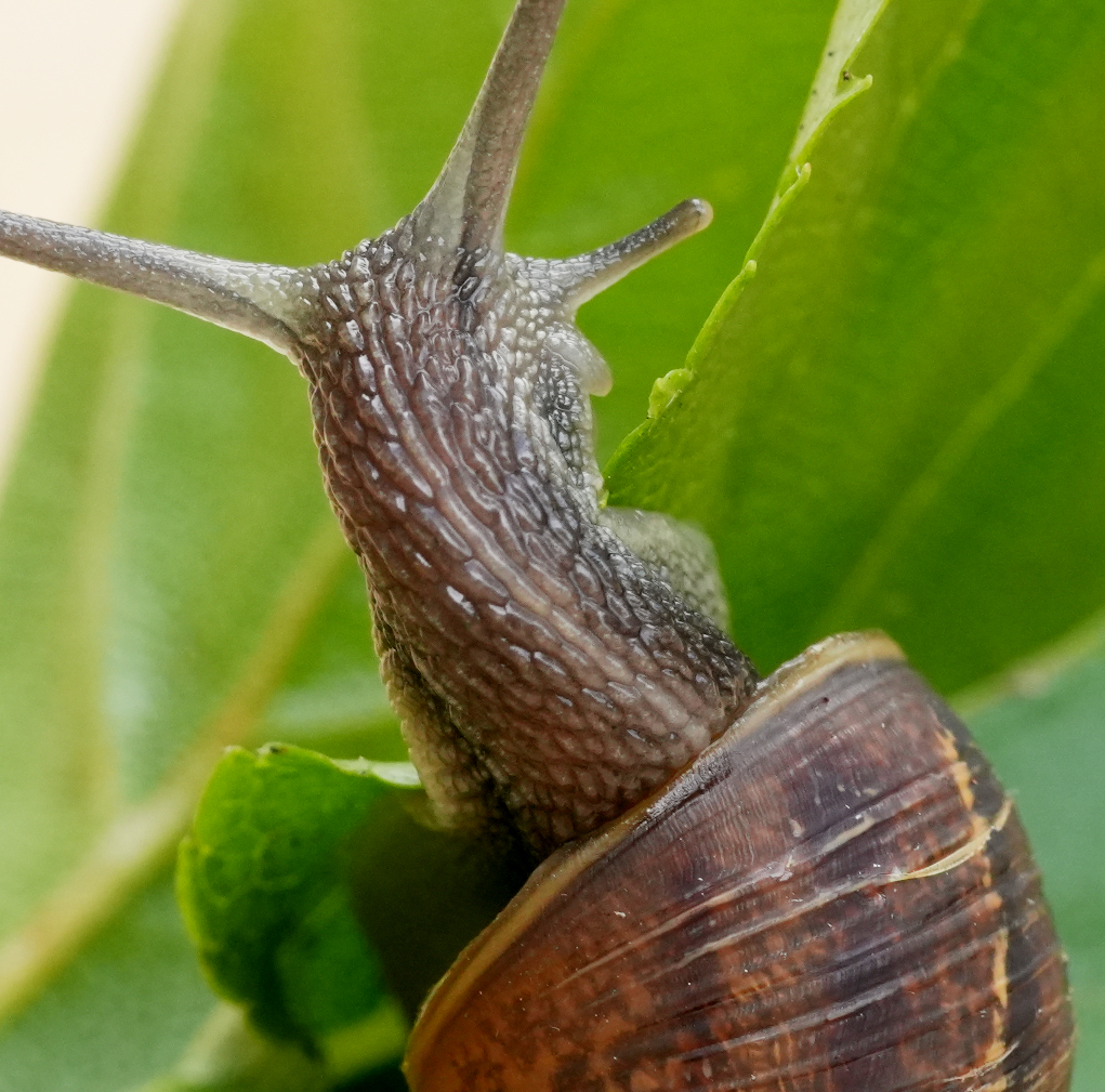 Segrijnslak op klimhortensia (SONY A6700 +macro) |