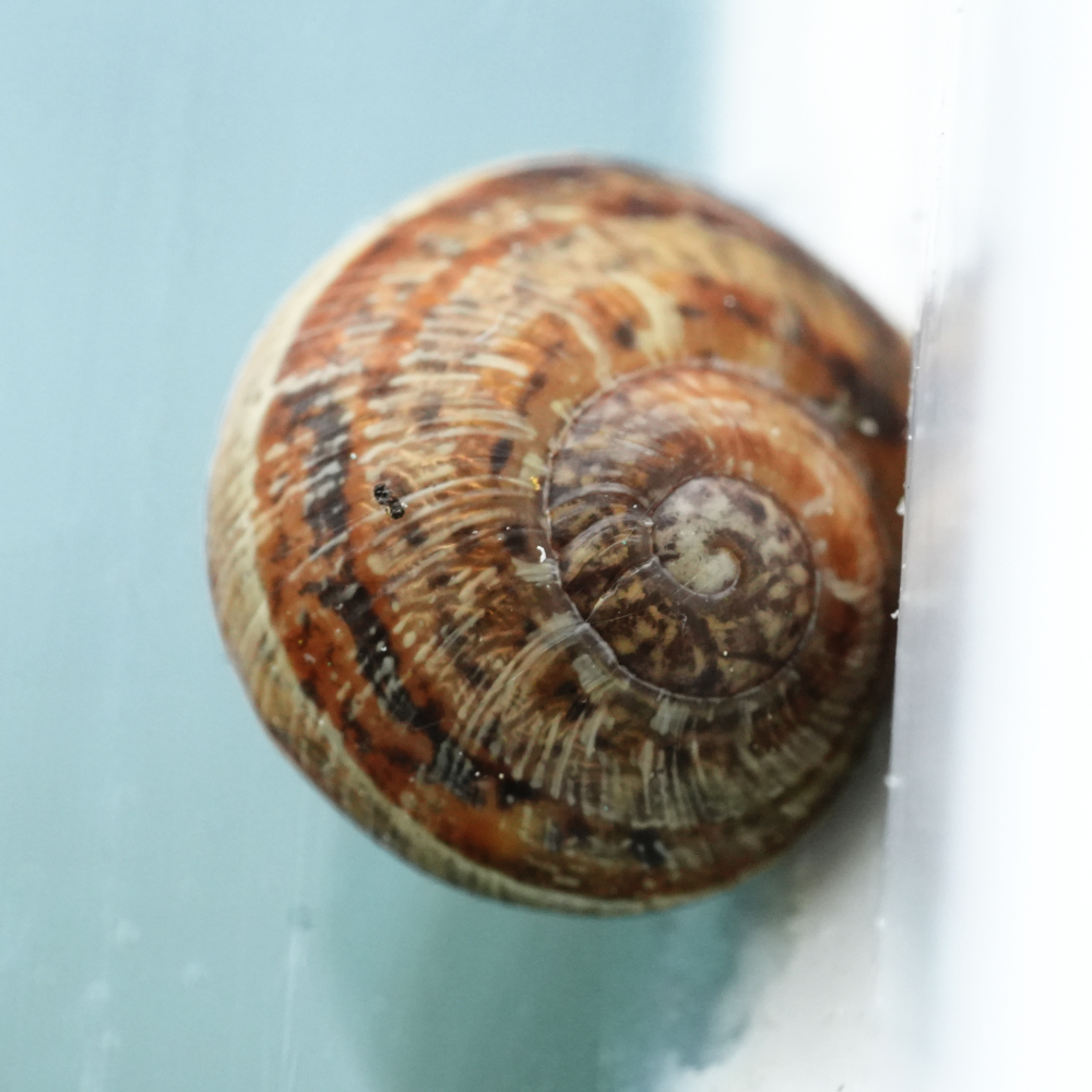 Ik wilde eerst weten of het hele verhaal klopte. Ik had nooit slakken op de kitrand gezien. Dat zou dan 's nachts moeten gebeuren? Er was maar één manier om het raadsel op te lossen: die slakken op heterdaad betrappen. Ik wilde 's nachts de Seissiger wildcamera opstellen. Toen ik in het donker de tuin in liep, hoorde ik gekraak onder mijn voeten. En ja hoor: ik trapte op een slak. LED-lampje er bij gehaald: het wemelde van de slakken op het pad. Gefotografeerd en ingevoerd in waarneming: bijna allemaal Segrijnslakken. Ze hebben een grotere schelp dan de bekende huisjesslakken en de schelp heeft allerlei patronen en is fraai gekleurd. De soort komt van oorsprong uit Zuid-Europa. Volgens waarneming.nl heeft de soort inmiddels de status 'algemeen' en 'inheems' en dus niet 'exoot'. Ze eten vooral tuinplanten en zouden zelf ook goed te consumeren zijn! Dat laatste was ik niet van plan.