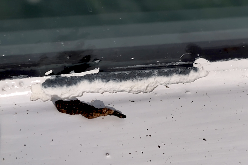 De schilder die ons huis aan het schilderen was, merkte op dat de kitlaag van de ramen aangetast was. Eerlijk gezegd was het mij nog niet opgevallen. Het kwam door slakken zei hij. Hij raadde dubbelzijdig plakband aan. Maar ik vond het nogal bizar dat slakken een (giftige?) kunststof zouden eten. Er is toch voedsel genoeg in de tuin?