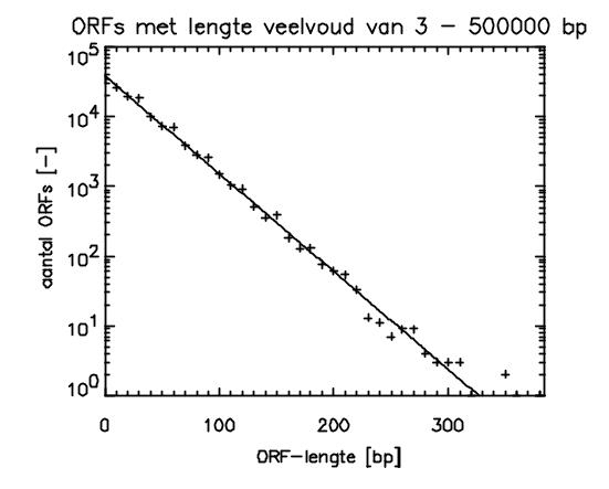 Mathematicians call the graph a Power Law. Please keep in mind that all this is purely mathematics. It depends on the underlying assumptions whether the results apply to living organisms. For now, it seems that genes of useful length could be found in random DNA with the length of the human genome (3.5 billion base pairs).