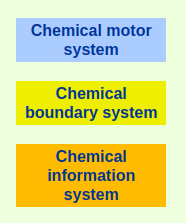 - chemical boundary system: cell membrane that separates the inside from the outside of the cell