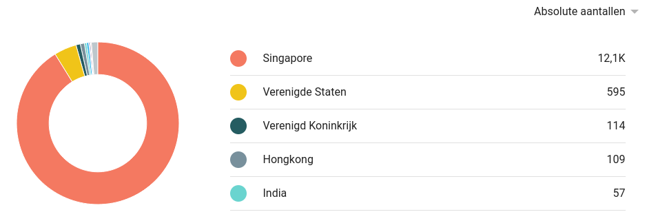 Tweederde van de 'bezoekers' (70%) komt niet uit Nederland, maar landen als Rusland, Duitsland, Frankrijk, VS, Panama, België, Oekraïne, Ierland, Roemenië. vreemd voor een Nederlandstalig blog. Hoe kan dat? Ik zie ze niet in de spam folder. Tijdens mijn blogvakantie heb ik meer hits uit Duitsland dan uit Nederland! Volgens de statistiek had ik vanaf 12 oktober méér bezoekers uit Rusland dan uit Nederland (maar je ziet dat niet in de spamfolder). Zoiets is een stroom van hits die een paar weken duurt en dan weer terugzakt naar de achtergrond.